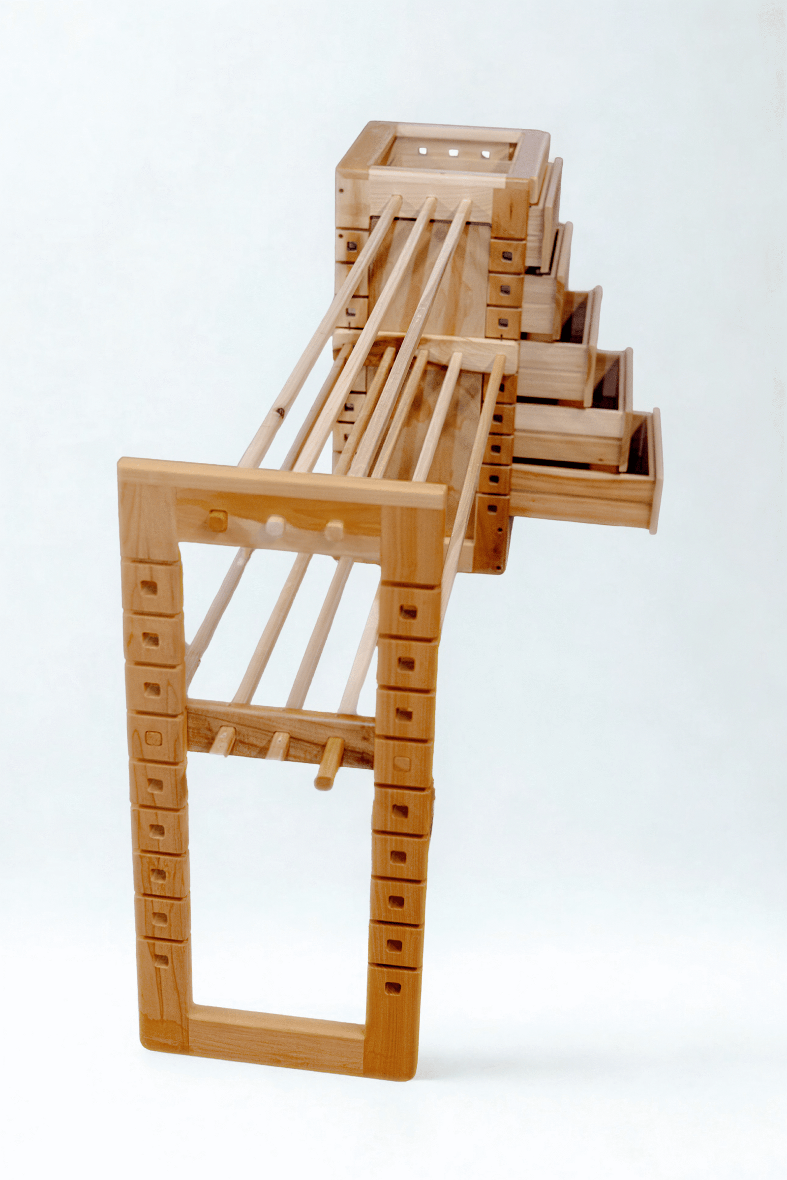 Escritorio multifuncional con 5 bastones y dos travesaños pequeños.